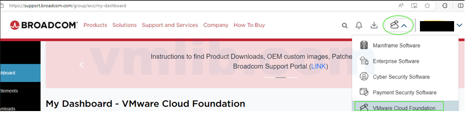 在登录页面中,注意用户名旁边的下拉菜单,从中选择 “VMware Cloud Foundation”。这一步确保你获得与 VMware 产品相关的下载选项。