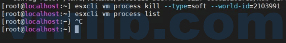 esxcli vm process kill --type=[soft,hard,force] --world-id=WorldNumber