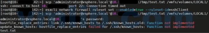 command to transfer files from the VM to the ESXi host. - Ensuring Access Despite External Issues: