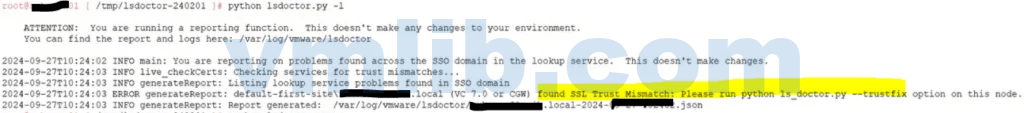 found SSL Trust Mismatch: Please run python lsdoctor.py --trustfix option on this node.
