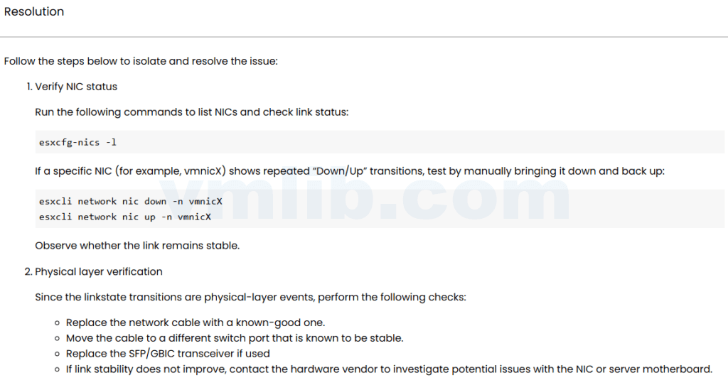 [vob.net.vmnic.linkstate.down] vmnic vmnicX linkstate down