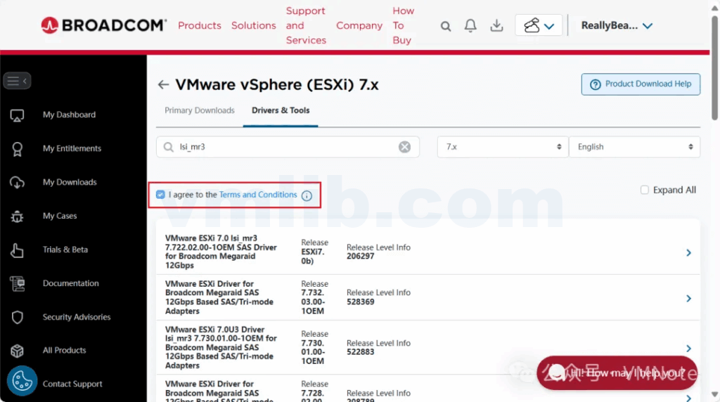 最近有不少小伙伴反馈说:参考《如何从博通支持主页下载VMware vSphere ESXi的驱动包》的文章去下载驱动包,结果发现自己是没有Site ID 的普通用户,已经没办法下载到驱动包了呢。今天特地用个人账户登录测试,其实呀,并不是真的下载不了啦,只是下载的入口发生了变化。没有关联 Site ID 的普通用户,只要参考下面这些步骤,同样也可以顺利下载到 ESXi 的驱动包。