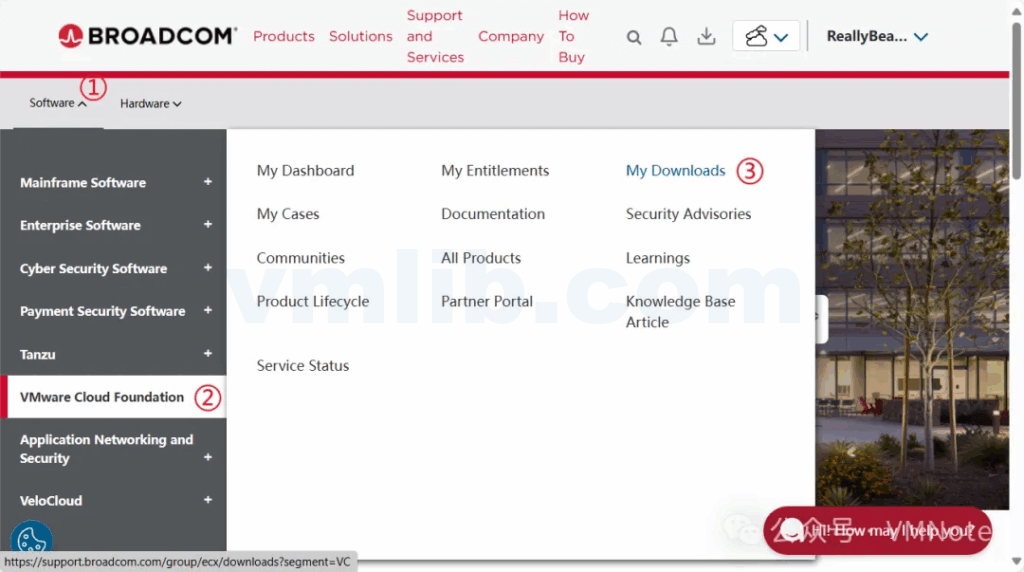 第2步,选择 Software —> VMware Cloud Foundation —> My Downloads