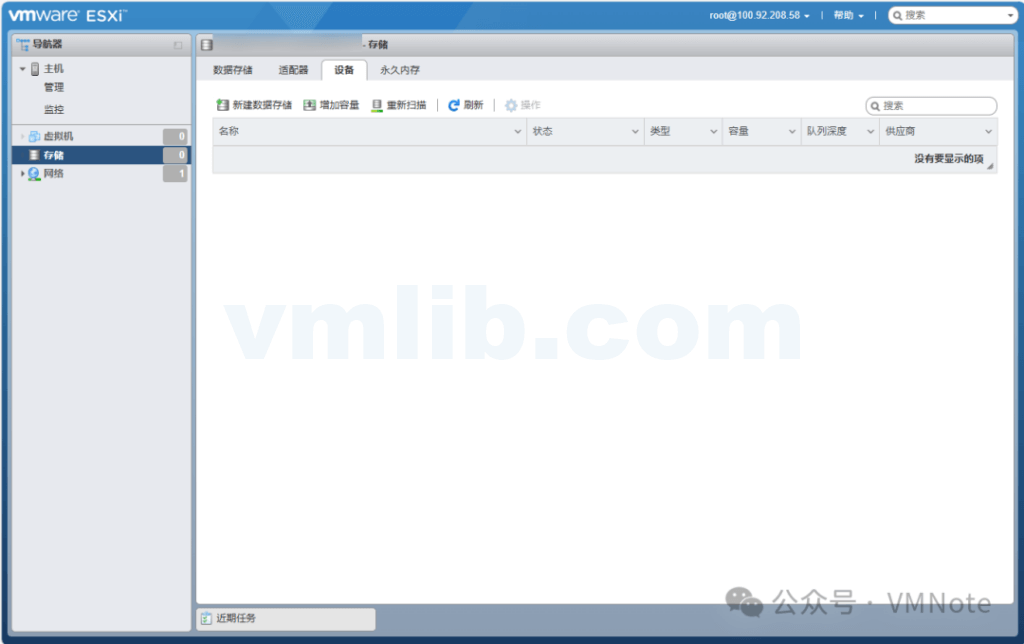 故障现象:客户近期为了添加内存条,对这台服务器进行了关机操作。内存扩充完成后,主机正常开机并登录 ESXi 客户端,但却发现一个严重问题:这台ESXi上的虚拟机全部“不见了”,也无法识别任何 datastore,甚至连硬盘设备都看不到了。