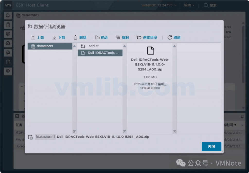 第2步,登录ESXi主机客户端,将RACADM的安装包上传到ESXi,详细步骤参考:《如何上传文件到VMware ESXi的数据存储(Datastore)》