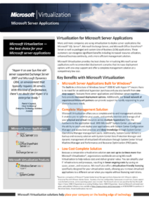 本文介绍了Microsoft虚拟化技术如何为企业提供部署Microsoft服务器应用程序的最佳选择,强调了其显著的资源利用率、业务连续性和高效管理解决方案。通过Windows Server 2008 R2和Hyper-V,为用户提供了一站式支持和完整的管理方案。