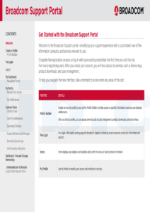 Broadcom支持门户提供个性化的支持体验,用户可以通过注册和登录访问与其业务权益相关的信息、产品和服务,包括创建病例、软件下载和许可证密钥生成。网站包含预登录页面、用户仪表板、个人资料管理及通知设置功能,旨在简化用户的支持流程。