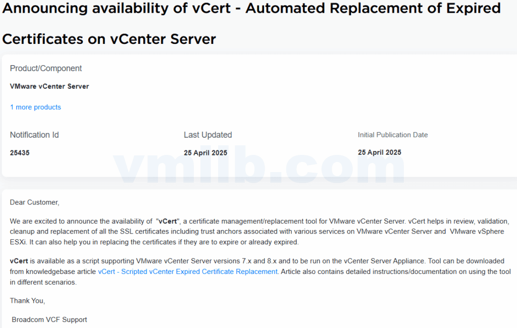 最近,博通VMware推出了一个新的工具叫vCert,见下面4月底的公告: