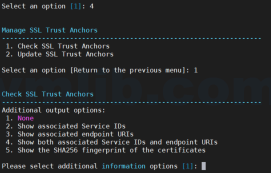 选项 6 将显示每个应关联指纹的 vCenter 扩展组件所配置的指纹值。