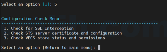- 此选项检查 STS 服务是否配置为使用VECS中的 MACHINE_SSL_CERT 存储的证书(通常用于 6.x/7.x 的全新部署),或是否仍使用旧版的STS_INTERNAL_SSL_CERT存储(若系统是从 5.5 升级而来则存在该项)。
