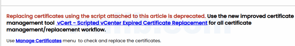按照上面公告的内容,vCert其实就是一个用于vCenter的证书管理,自动替换的脚本工具,可用于检查证书状态、验证证书和服务之间的信任链、清理无效证书,并在证书即将过期或已过期时自动完成替换。