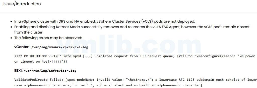解决问题的关键是识别并修复主机名格式问题。通过正确的配置和验证,可以确保 vCLS Pod 能够正常部署和运行,从而保证集群的稳定性。