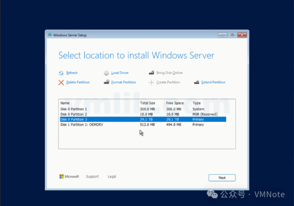 “Windows Server can‘t be installed on disk0 partition 1.“