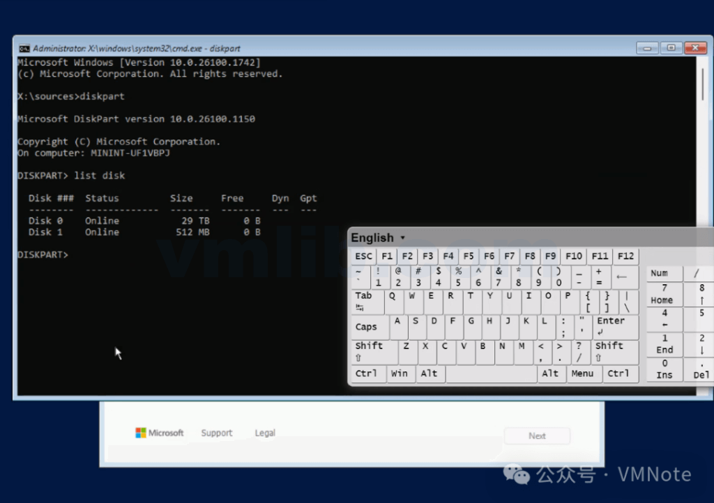 (1)根据上图描述来看是像是磁盘异常(unknown),使用Disk part命令检查,磁盘识别正常,但是注意到这个磁盘容量超级大有29TB