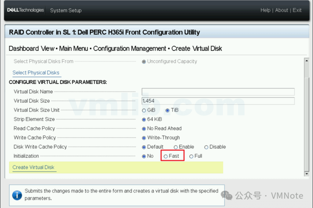 (3)确认此问题应该是客户创建RAID的时候未选择快速初始化(Fast),默认值是No,在后台执行的是完全初始化(Full)